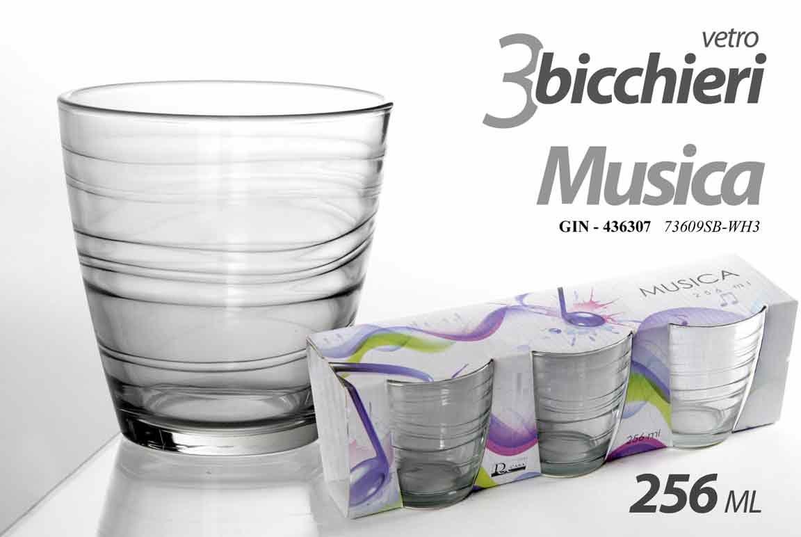 3 Bicchieri Acqua 256 Ml Musica