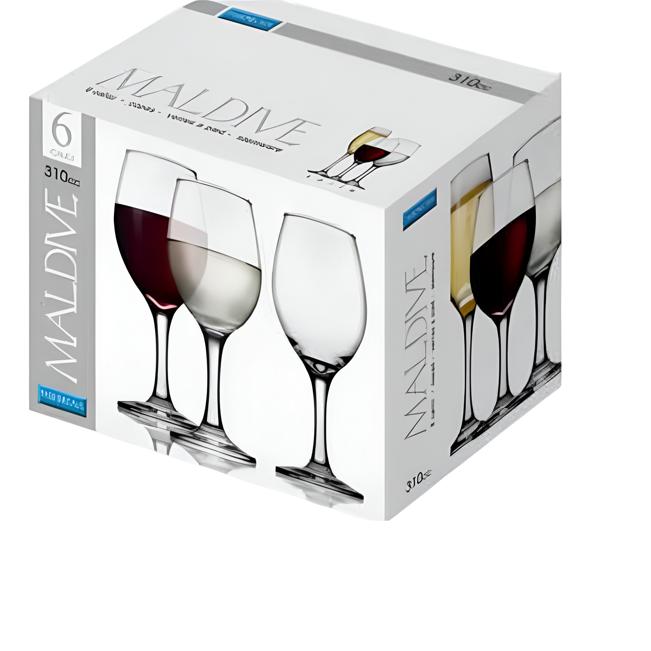 .Set di 6 calici per acqua della linea Maldive con capacità 310cc! Bicchieri in vetro eleganti e versatili, perfetti per servire acqua, vino bianco, cocktail e bevande. Design classico con stelo lungo e coppa ampia per una presa comoda ed elegante. Ideali per la tavola di tutti i giorni e per occasioni speciali.