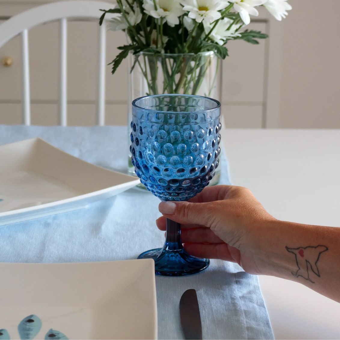 Eleva il tuo tavolo con questo esclusivo set di 6 calici in vetro colorato della collezione “Blossom”. Realizzati con materiali di alta qualità, presentano un design moderno ed elegante con una lavorazione esterna a bolle che dona un tocco di classe e originalità a ogni pasto.