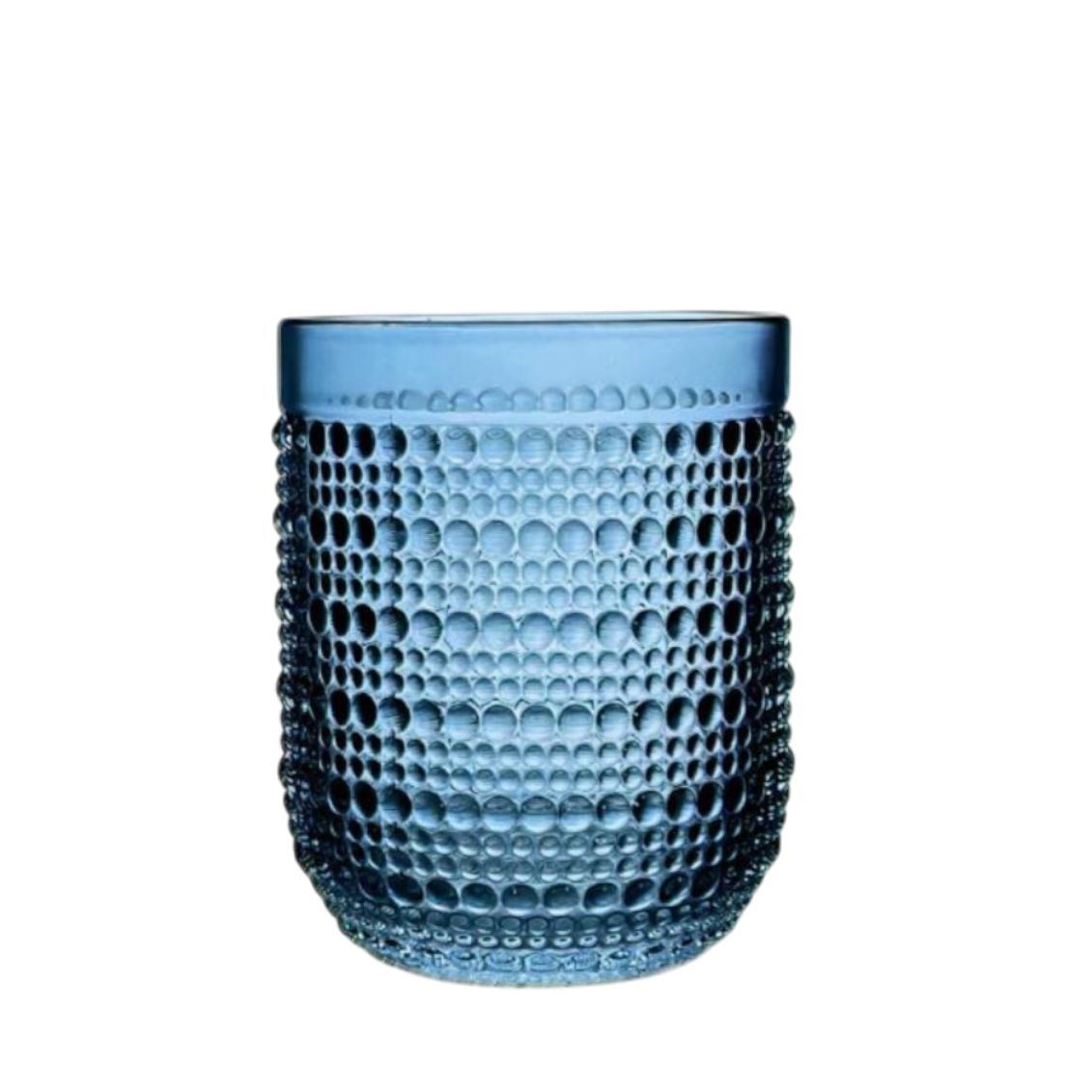 Eleva il tuo tavolo con questo esclusivo set di 6 tumbler Serenity in pasta di vetro colore blu. Realizzati con un design unico e una texture a pois in rilievo, questi bicchieri aggiungono un tocco di classe e sofisticazione a qualsiasi pasto.