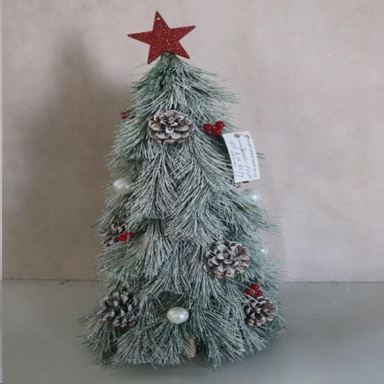 Albero Natale C/Neve Pigne-Bacche - H55Cm Base Legno