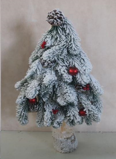 Albero Natale C/Neve Pigne-Bacche - H60Cm Base Legno