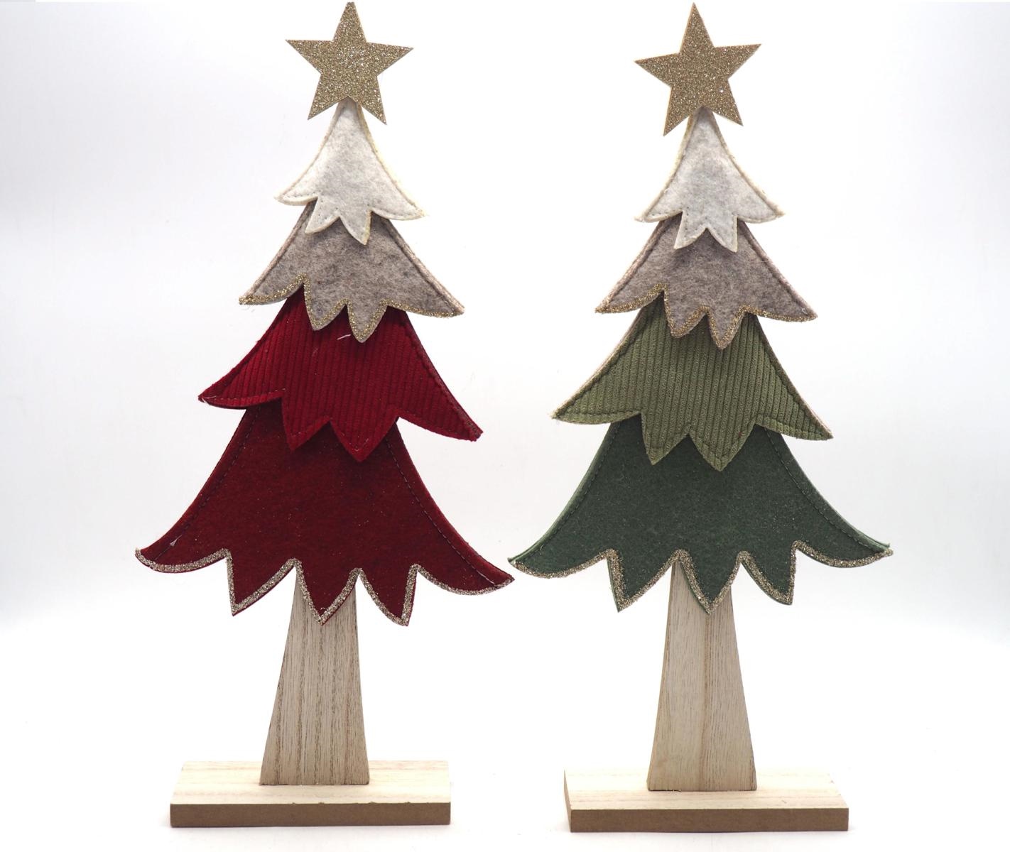 Albero Natale Panno Rosso/Verde H.31X15X4Cm Con Base Legno 2Ass