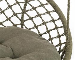La seduta è realizzata in tessuto poli-cotone (cotone e poliestere), un materiale resistente agli agenti atmosferici e facile da pulire, che garantisce al contempo comfort e traspirabilità anche durante le giornate più calde.