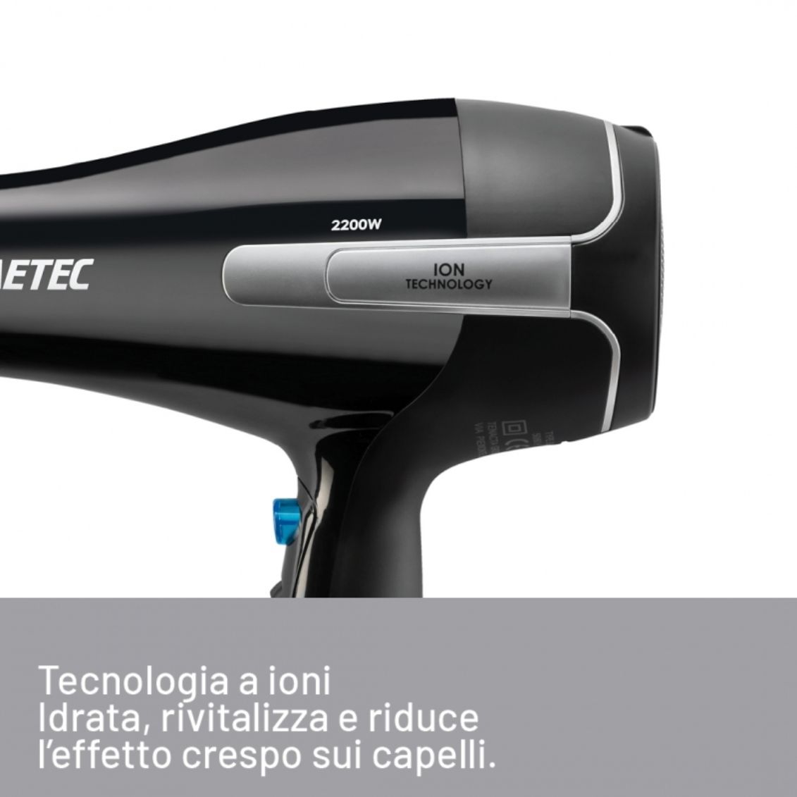 .Imetec K7 2000 è il phon potente e versatile progettato per asciugare e modellare rapidamente ogni tipo di capello. Grazie ai suoi 2200W di potenza e alla tecnologia a ioni, riduce l'effetto crespo lasciando la chioma idratata e vitale. Completo di concentratore stretto per pieghe lisce e diffusore professionale per ricci voluminosi, offre 8 combinazioni di aria e temperatura per uno styling personalizzato e preciso.