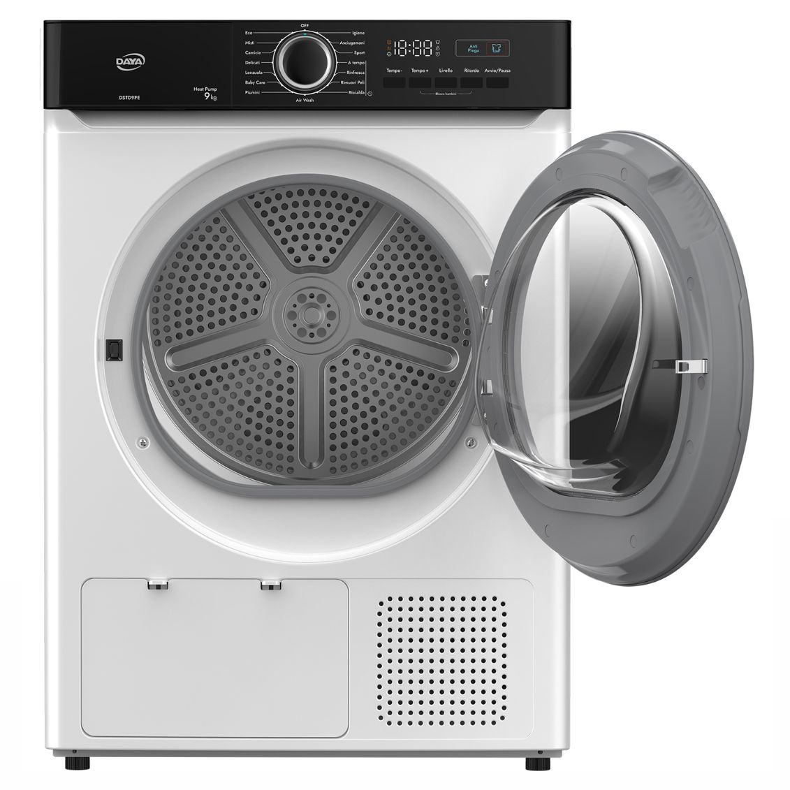 L'asciugatrice DSTD9PE con tecnologia a pompa di calore rappresenta la soluzione ideale per chi cerca efficienza energetica e risultati professionali. Con una capacità di 9 kg e 15 programmi specializzati, offre la massima versatilità per ogni tipo di tessuto. Il sensore di umidità intelligente ottimizza automaticamente i tempi di asciugatura evitando sprechi energetici.