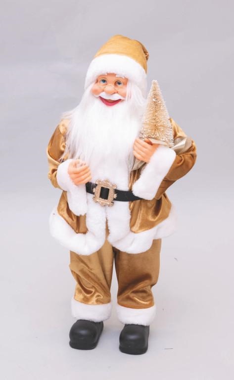 Babbo Natale Cm.40 C/Vestito Velluto Oro E Alberino