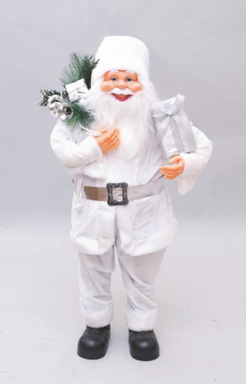 Babbo Natale Cm.60 C/Vestito Velluto Bianco E Candy Cane Argento