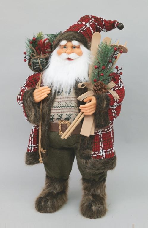 Babbo Natale Cm.80 Verde Pelliccia Marrone C/Sci E Bacche Rosse
