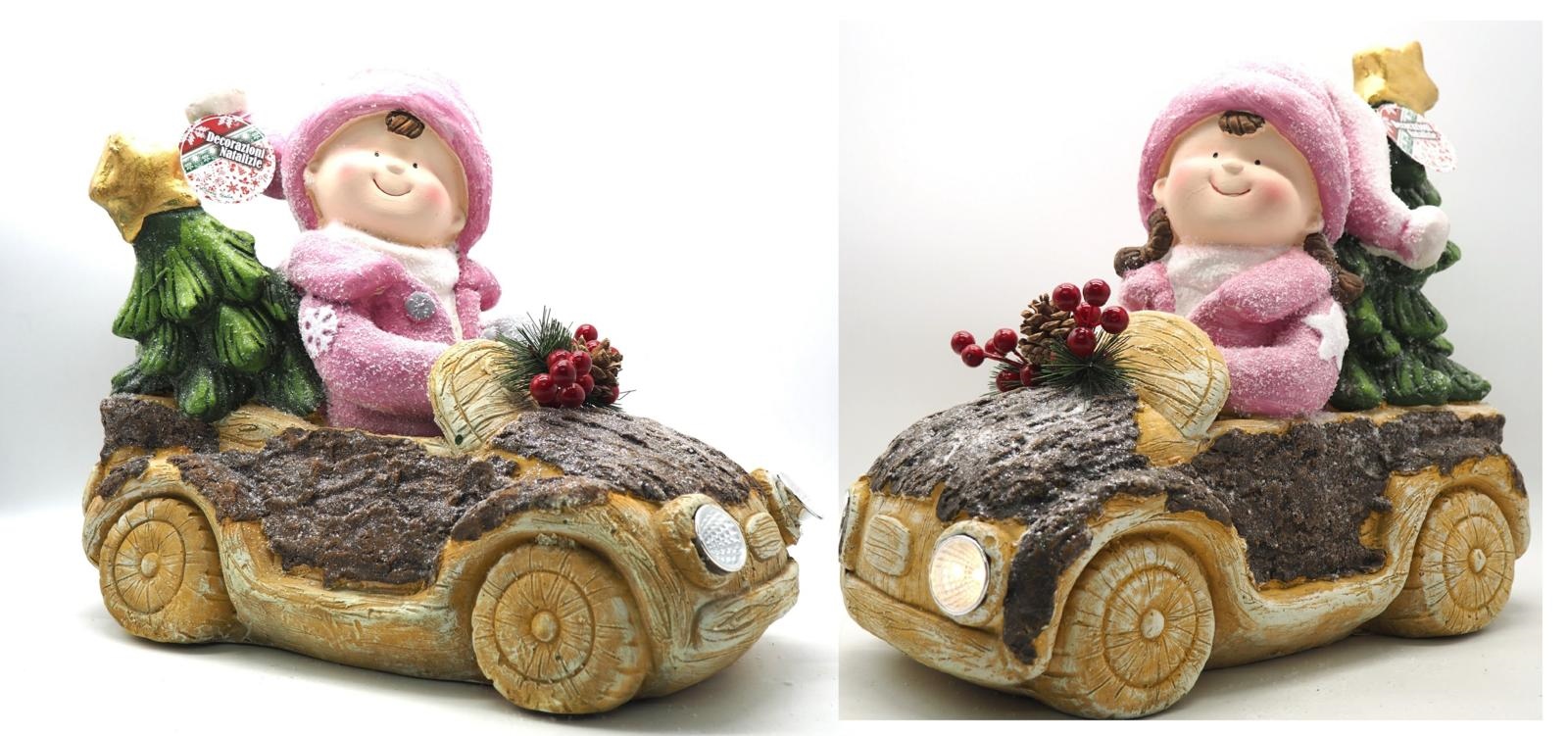 Bambino/A Seduto In Macchina Magnesia H.33/36X42X22Cm