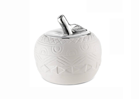 Aggiungi un tocco di brillantezza e originalità al tuo spazio con questo barattolo a forma di mela argentata.