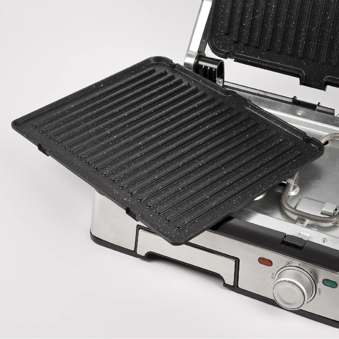 Con le sue dimensioni generose delle piastre (29 x 23 cm), la Lavica Inox si adatta a ogni esigenza: chiusa per tostare sandwich e cuocere hamburger su entrambi i lati, o aperta per grigliare verdure e spiedini in compagnia. Le spie luminose di funzionamento e raggiungimento temperatura rendono l'uso intuitivo e immediato.
