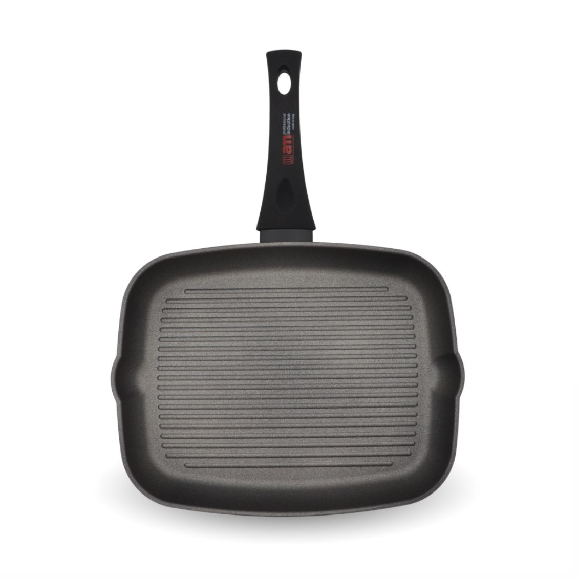 .Bistecchiera professionale rettangolare ultra-generosa di altissima qualità con tecnologia antiaderente rivoluzionaria e fondo ad induzione universale della prestigiosa linea Super Grill Accademia Mugnano. Questa bistecchiera di 33 x 26 cm con altezza di 4 cm rappresenta l'eccellenza assoluta della cucina italiana e professionale, combinando innovazione tecnologica avanzata e design sofisticato. Il corpo in alluminio puro al 99,5% in lega 4006 con spessore da 4 a 6 mm forgiato garantisce una diffusione del calore perfetta e uniforme. Il rivestimento antiaderente rivoluzionario GREBLON C3+ PEEK AM Long-lasting Coating offre straordinaria resistenza e durabilità eccezionale. Il fondo AD INDUZIONE AM Professional Induction è universale su tutte le superfici. I manici soft touch neri con tampografia rimangono freschi e ergonomici. Ideale per bistecche grandi, carni professionali, preparazioni elaborate e cotture gourmet di altissimo livello.