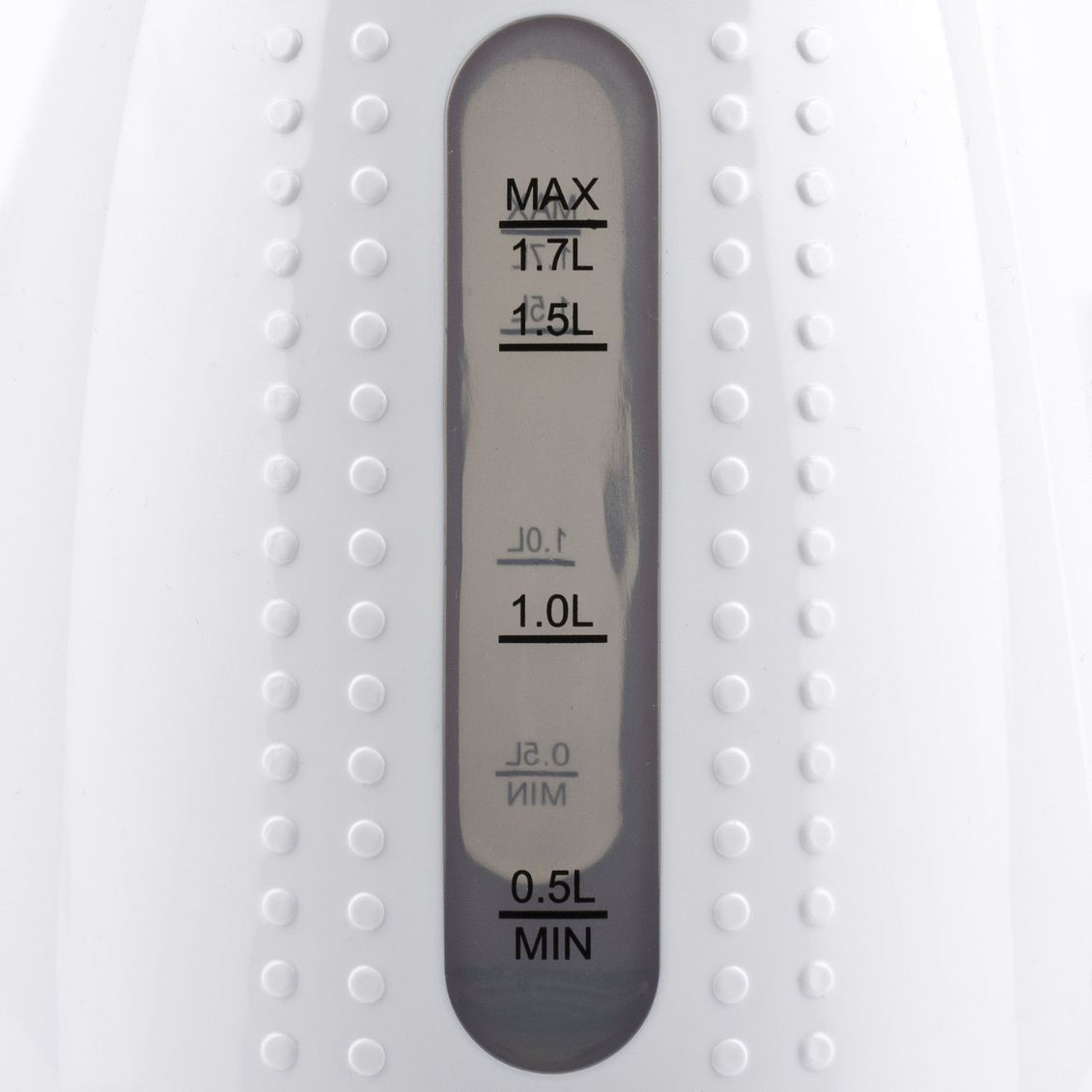 .Bollitore elettrico Girmi BL22 capacità 1,7 L con potenza 1850-2200 W, ideale per tè, tisane e bevande calde. Dotato di caraffa con finestra graduata e indicatore livello acqua, beccuccio con filtro e resistenza nascosta. Include spegnimento automatico, sistema di sicurezza anti surriscaldamento e base ad incastro con rotazione 360° con avvolgicavo integrato. Colore bianco. EAN 8056095874295.