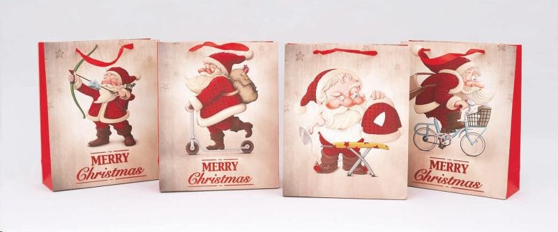 Busta Regalo Cm.26X10X32H Marrone Dec.Babbo Glitter 4 Ass.