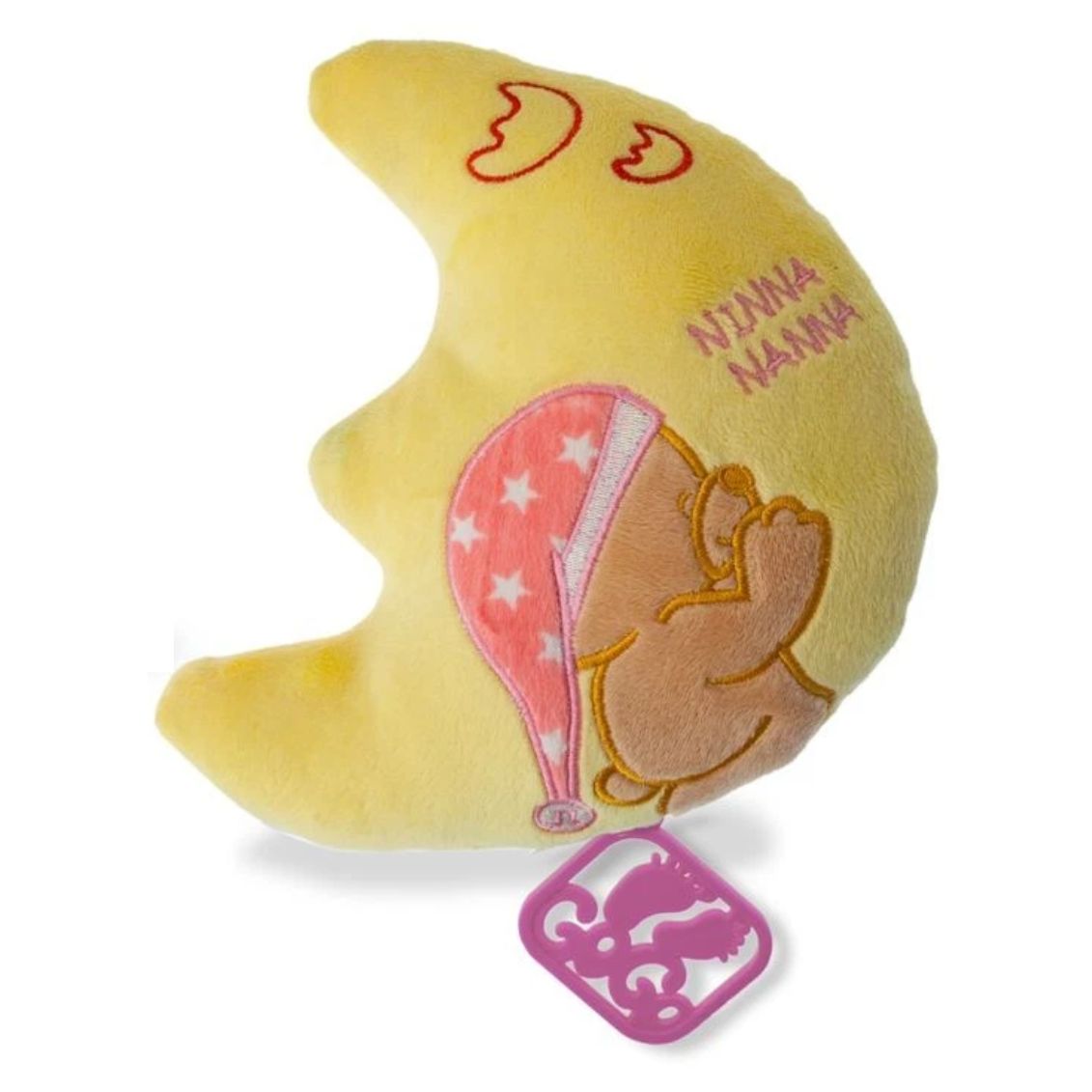 Morbido carillon a forma di luna con orsetto ricamato: tira l’anello e parte la ninna nanna. Ideale dalla nascita, coccola il bebè con una melodia dolce e aiuta a creare una routine serena per la nanna in culla o passeggino.