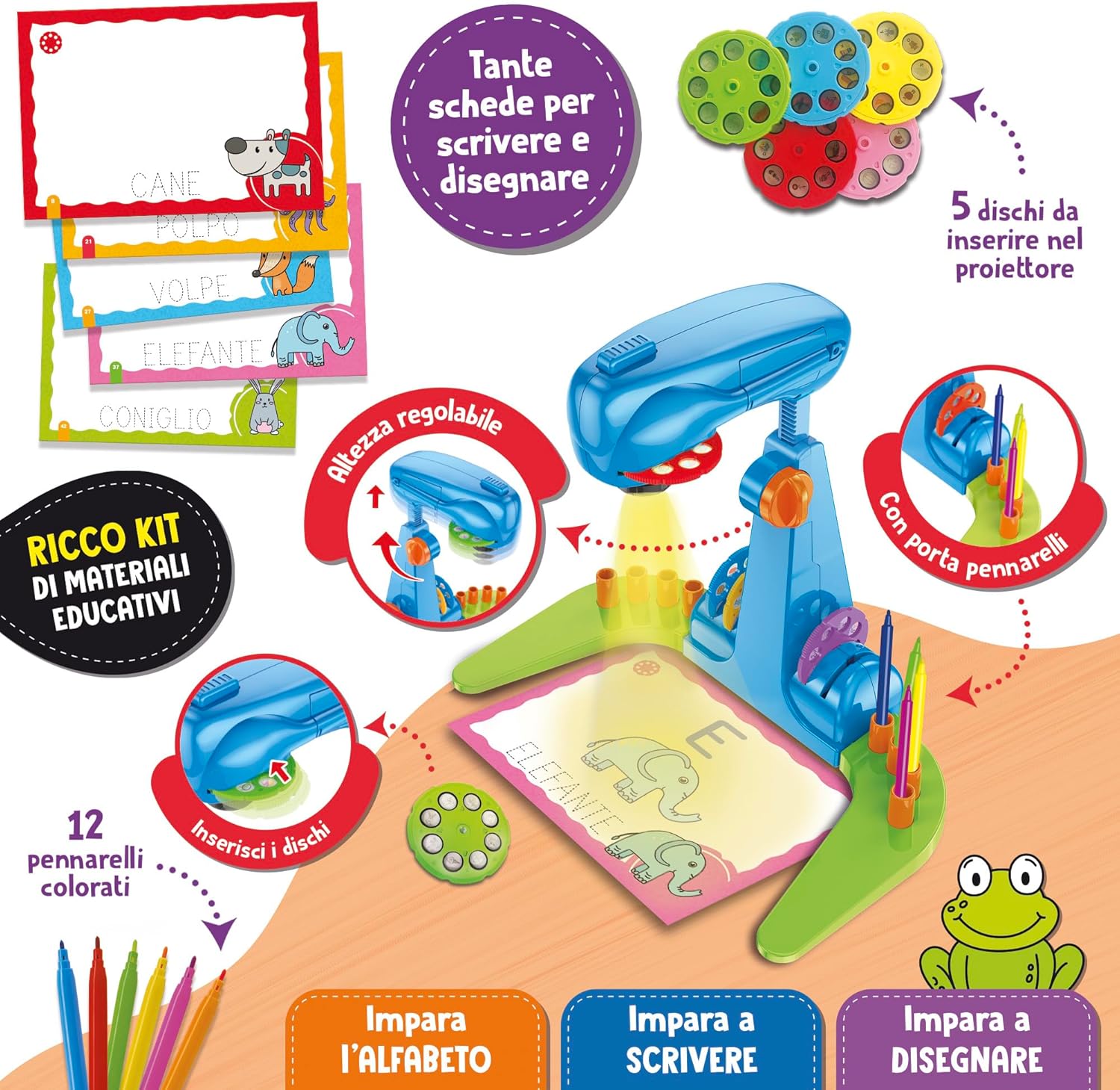 Carotina Proiettore Led Scuola di Scrittura: Impara l'Alfabeto e Disegna con la Luce!