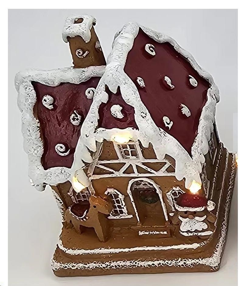 Casetta In Poliresina C/Luci - Rosso - 11.5X8.3X9Cm
