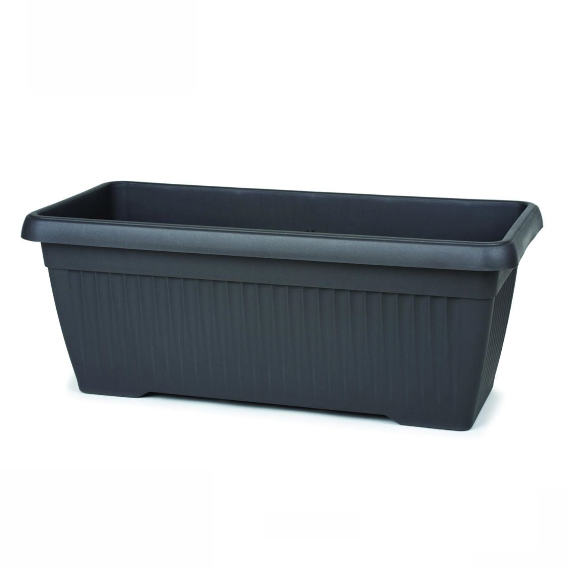 Flower Box Mediteran Maxi è una fioriera rettangolare in plastica con design a righe verticali in stile mediterraneo, disponibile nella variante colore antracite. Dimensioni: 80 x 37 x 30,5 cm, capacità 60 litri. Codice EAN: 3838851444851.