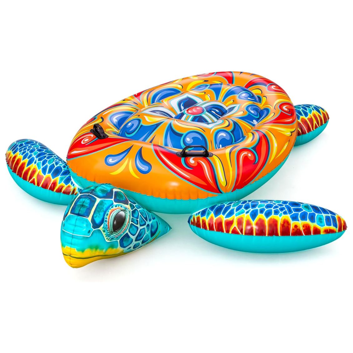 Il Bestway Cavalcabile Tartaruga è un galleggiante gonfiabile in PVC a forma di tartaruga marina con grafica ornamentale multicolore, dimensioni 183x173 cm e due maniglie integrate per una presa sicura. Codice EAN: 6941607368596.