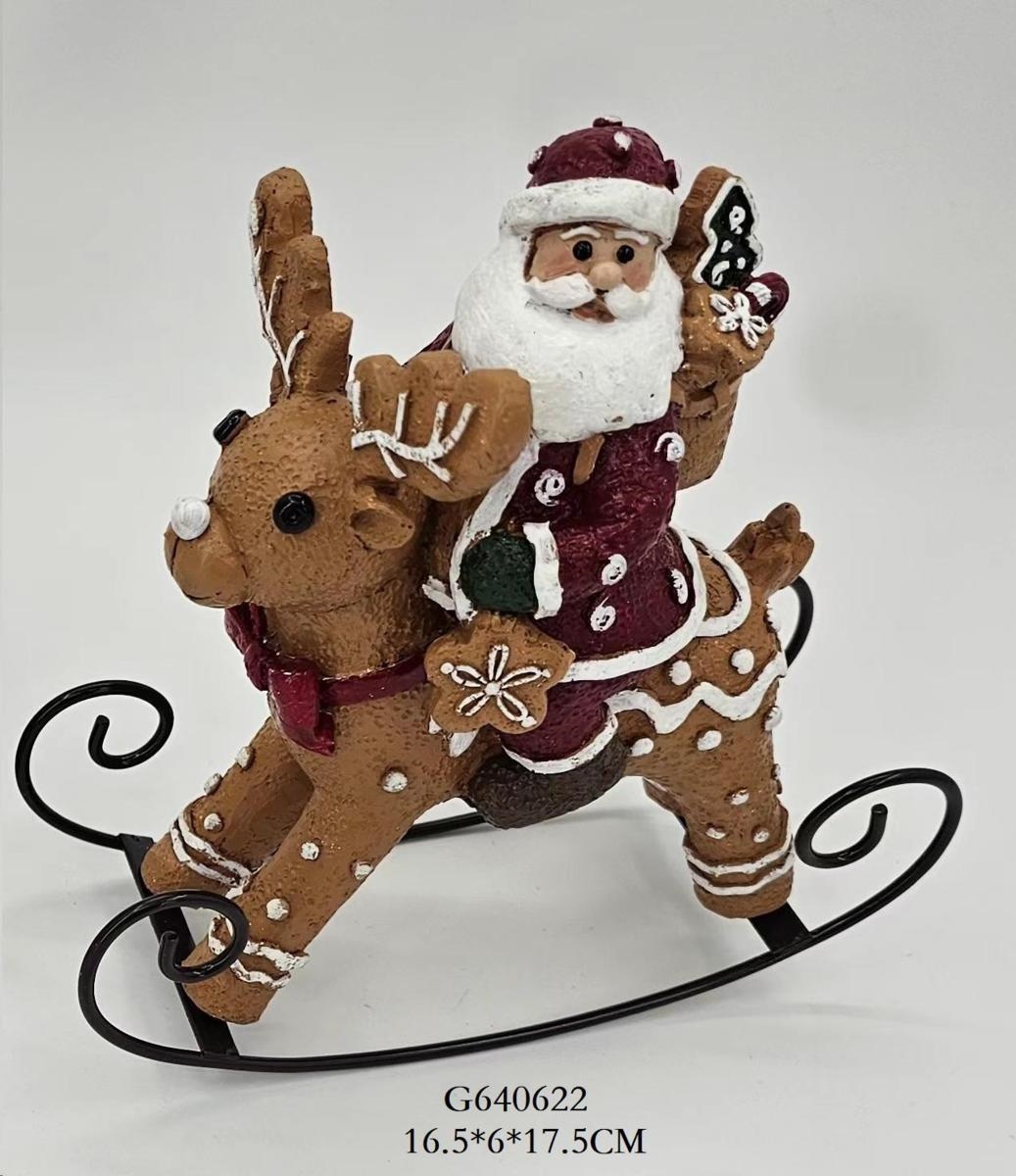 Cavallo A Dondolo In Poliresina - C/Babbo Natale - 17.5X16X6Cm