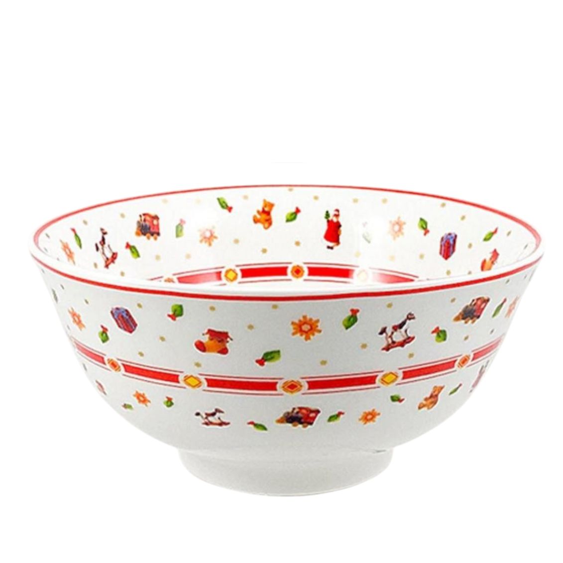 .Porta l'eleganza del Natale sulla tua tavola con questa splendida ciotola in porcellana! Questa ciotola da Ø16cm e altezza 8cm presenta un raffinato decoro natalizio con albero di Natale decorato al centro, pacchi regalo e dettagli festivi lungo i bordi rossi. Realizzata in porcellana premium di alta qualità, resistente e duratura, è perfetta per servire zuppe, insalate, cereali, macedonie, pasta, gelati e molto altro. Lavabile in lavastoviglie e utilizzabile in microonde, combina funzionalità pratica e atmosfera festiva. Ideale per cene eleganti o pranzi informali durante le festività. Un pezzo che dona classe e calore natalizio ad ogni tavola!