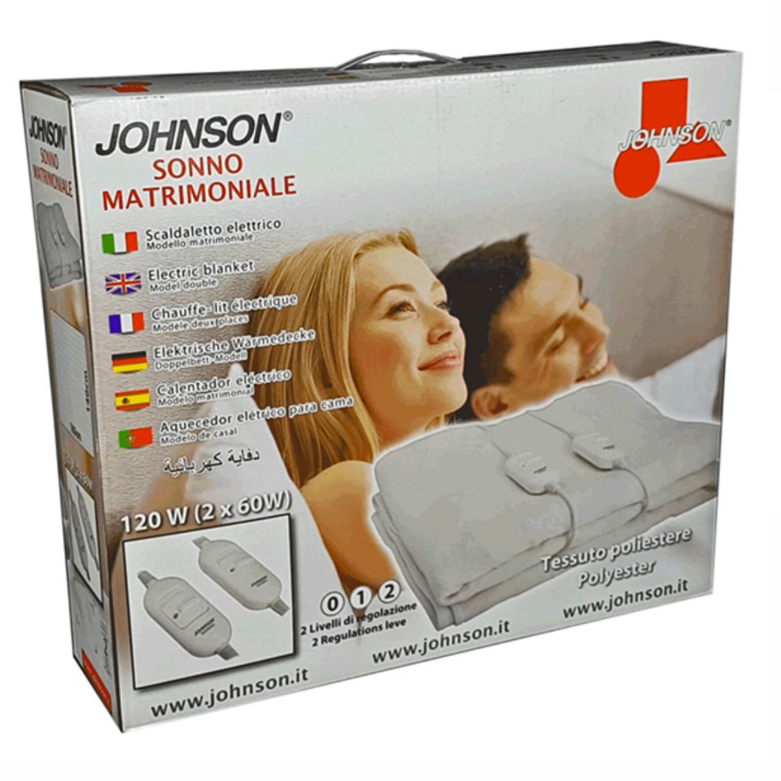 .Comfort personalizzato per entrambi! La coperta elettrica Sonno Matrimoniale di Johnson (160x140cm) con 2 comandi indipendenti permette a ciascuno di regolare la propria temperatura ideale. Morbido poliestere, 2 livelli di calore e solo 120W per notti serene e calde.