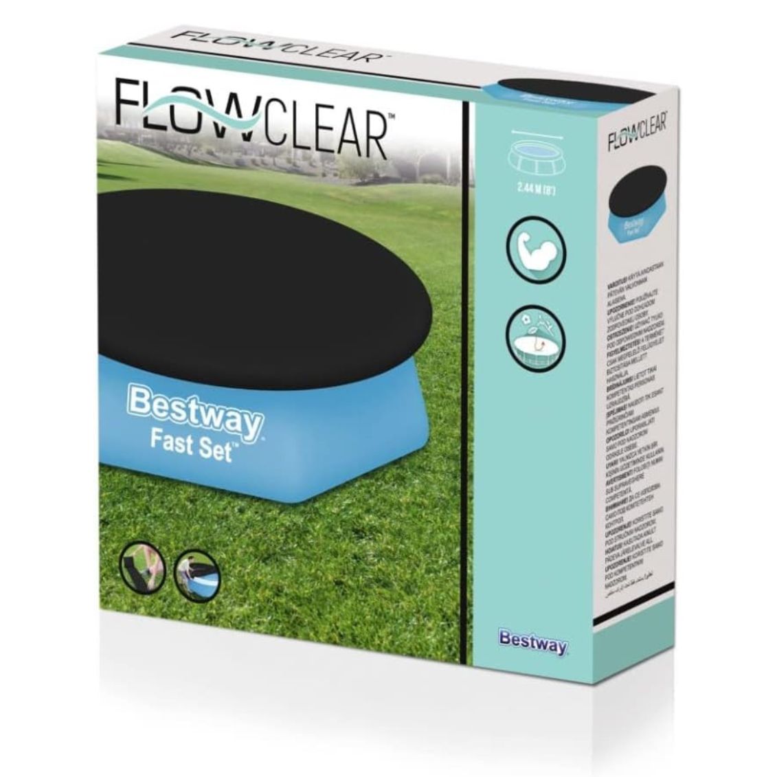 .Mantieni l'acqua della tua piscina sempre pulita e cristallina quando non la utilizzi con il Telo Copripiscina Bestway (Modello 58032). Progettato appositamente per le piscine fuori terra ad anello gonfiabile della linea Fast Set con un diametro di 2,44 metri (8 piedi), questo accessorio è fondamentale per impedire l'accumulo di foglie, insetti e detriti portati dal vento.