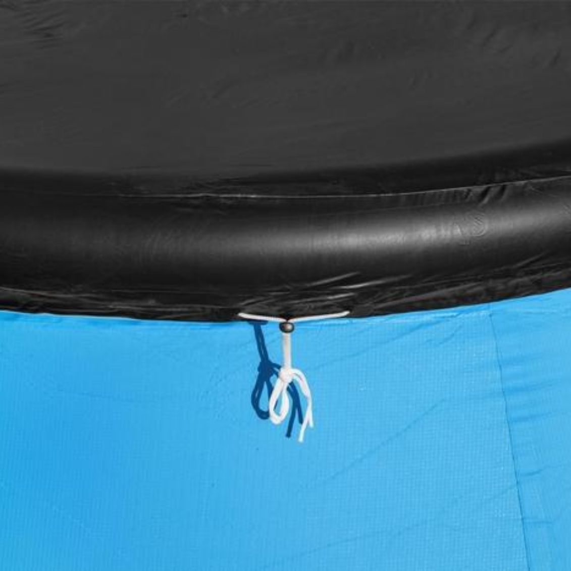 La copertura è realizzata in resistente materiale plastico ed è dotata di speciali fori di drenaggio sulla superficie, che impediscono l'accumulo di acqua piovana e proteggono il telo dalle sollecitazioni eccessive causate dal peso. Il fissaggio è estremamente semplice e sicuro: grazie alla corda di tensione integrata lungo tutto il perimetro, potrai sigillare perfettamente i bordi della piscina, assicurando che la copertura rimanga saldamente al suo posto anche in caso di brutto tempo o forte vento.