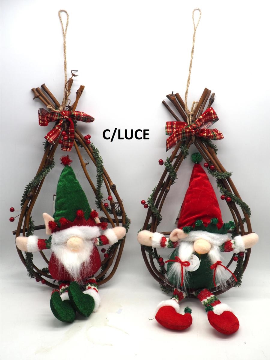 Corona Decorativa C/Babbo-Mamma Natale-Da Appendere-55 Cm-C/Luce