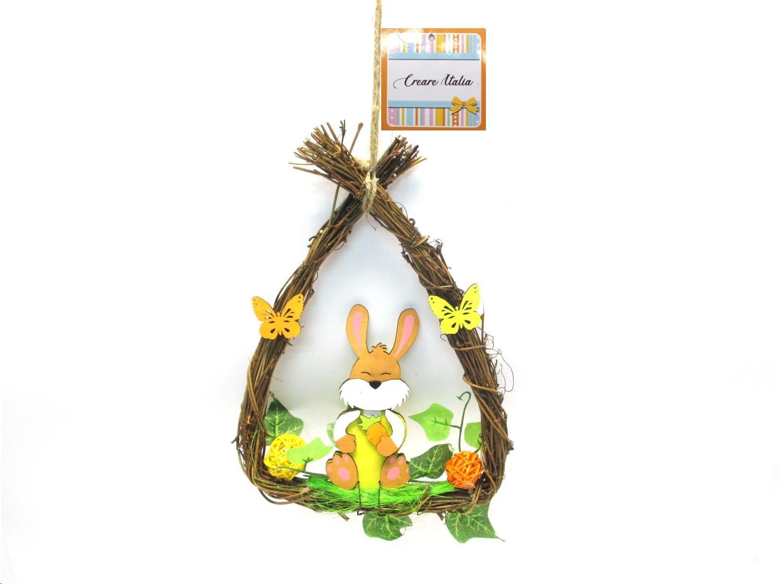 Corona Rami Sacco C/Coniglio C/Decorazioni H.28X19X3,5Cm.