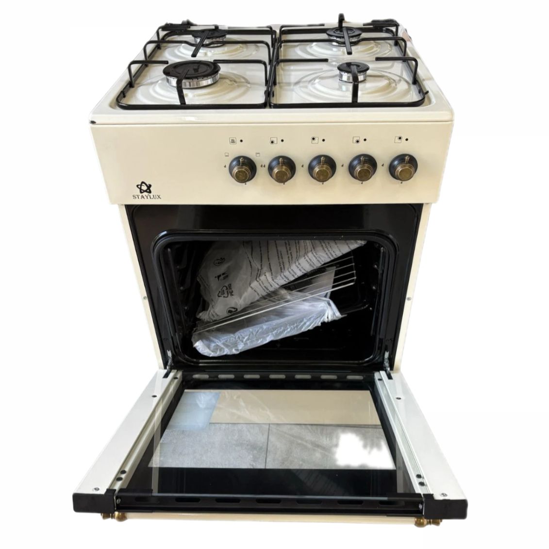 Staylux 55G40F è sinonimo di semplicità e robustezza. Il controllo meccanico tramite manopole ergonomiche permette una regolazione intuitiva della fiamma. **Nota Bene:** l'accensione non è automatica, è necessario munirsi di un accendino da cucina. Il forno a gas statico raggiunge rapidamente la temperatura desiderata, garantendo cotture uniformi. Il coperchio superiore protegge il muro dagli schizzi durante l'uso e, una volta chiuso, offre un piano d'appoggio aggiuntivo utile quando la cucina è spenta.