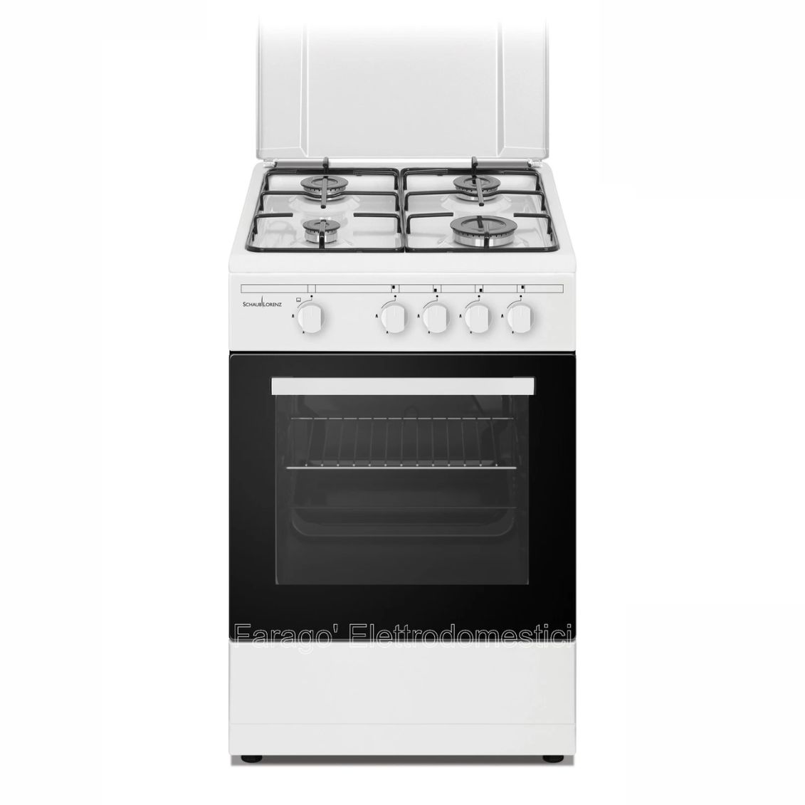 La Schaub Lorenz SS450GW è progettata per essere intuitiva e funzionale. Il coperchio superiore in metallo protegge il piano cottura quando non in uso e funge da paraspruzzi durante la preparazione dei pasti. Il forno a gas statico ripropone i valori della cottura tradizionale, ideale per ottenere pizze croccanti e arrosti succosi. La cavità interna smaltata riduce l'aderenza dello sporco, facilitando la rimozione di grasso e residui con una semplice passata di spugna.