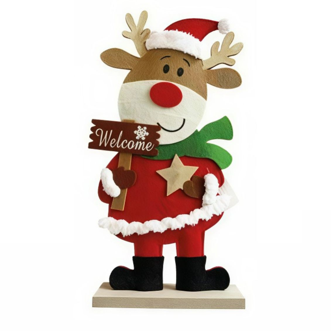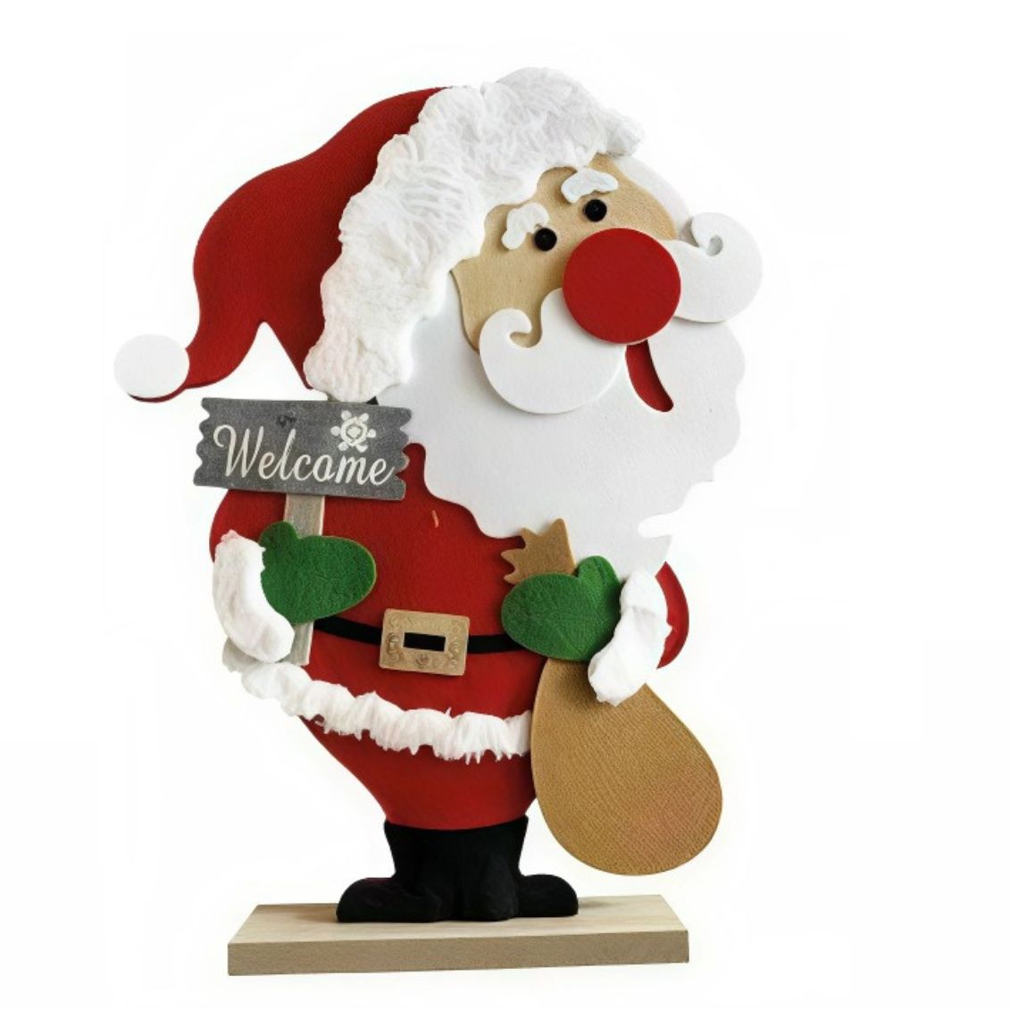 Queste decorazioni in feltro trasformano qualsiasi ambiente in uno spazio natalizio accogliente. Posizionale su mensole, camini, credenze, davanzali o come centrotavola. La scritta "Welcome" le rende perfette anche per l'ingresso di casa, accogliendo gli ospiti con spirito festoso. Leggere ma stabili grazie alla base in legno.