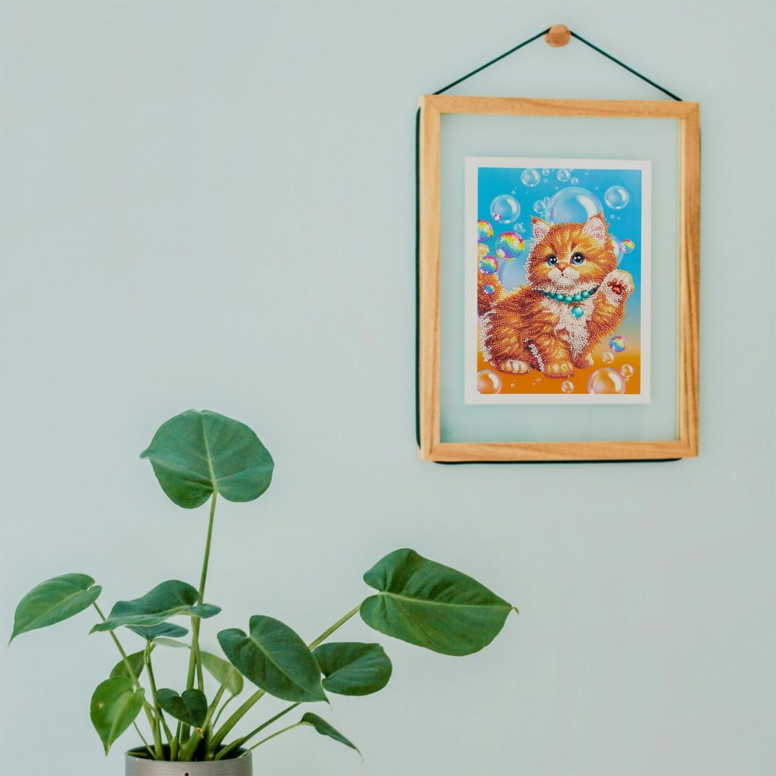 Per decorare il mosaico togli la pellicola protettiva dal quadro e applica le gemme ai numeri corrispondenti seguendo lo schema colore. Il foglio di istruzioni ti guida nell’attività, creando un affascinante gattino rosso in rilievo.