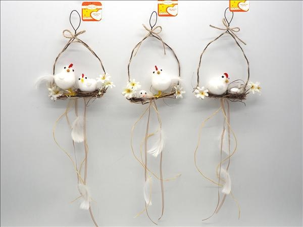 Dietroporta Con Chioccia Con Pulcino Con Rametti H.15X10Cm.
