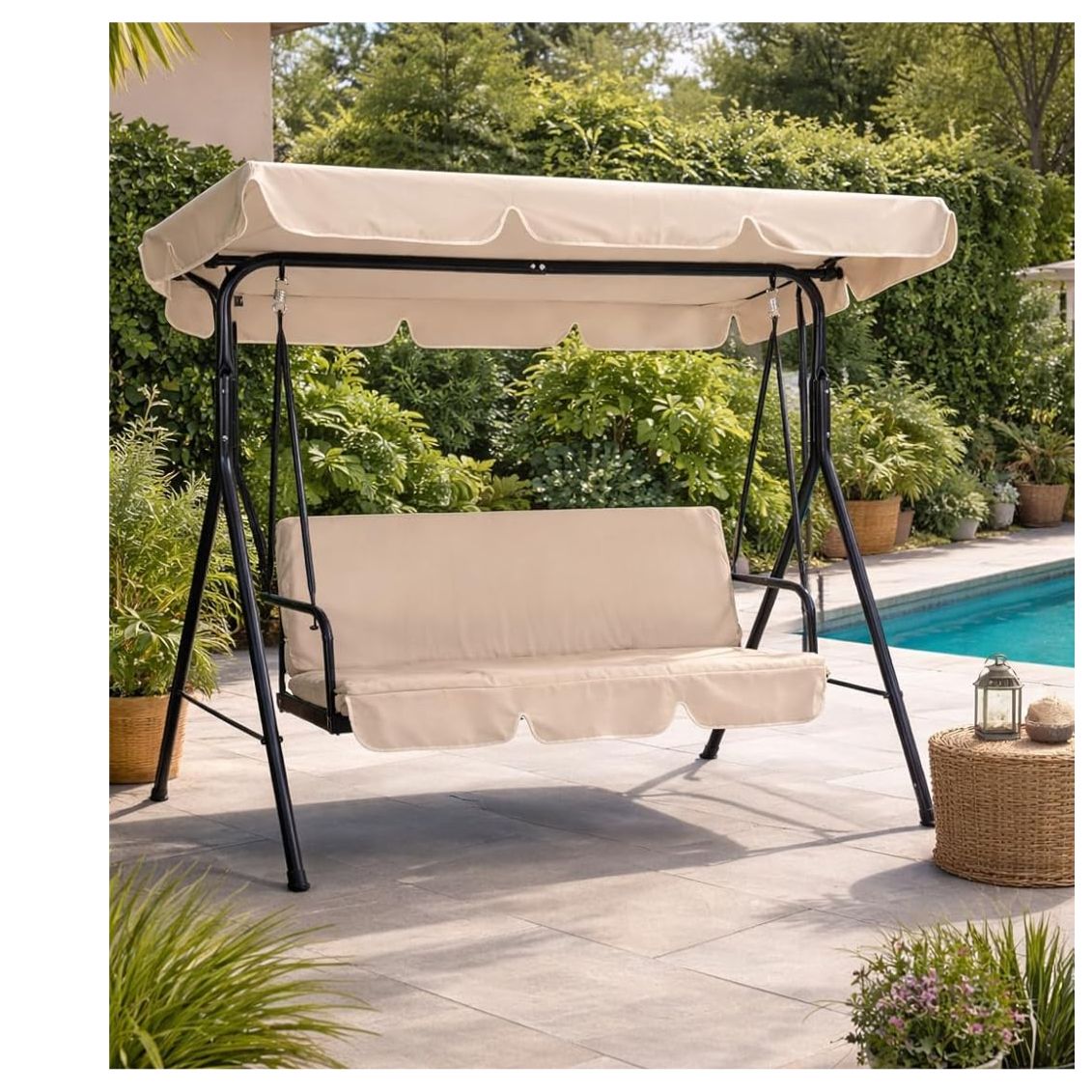 Il Dondolo Hawaii unisce estetica, resistenza e praticità. La tonalità beige si adatta armoniosamente a qualsiasi stile di arredamento outdoor, dal classico al contemporaneo. A differenza dei dondoli con cuscini in cotone, l'uso del textilene per la seduta offre un vantaggio enorme: non trattiene l'umidità, si asciuga rapidamente in caso di pioggia improvvisa e garantisce una seduta fresca e traspirante anche nelle giornate più afose. La struttura robusta assicura dondolii sicuri per godersi momenti di lettura o riposo all'aria aperta.