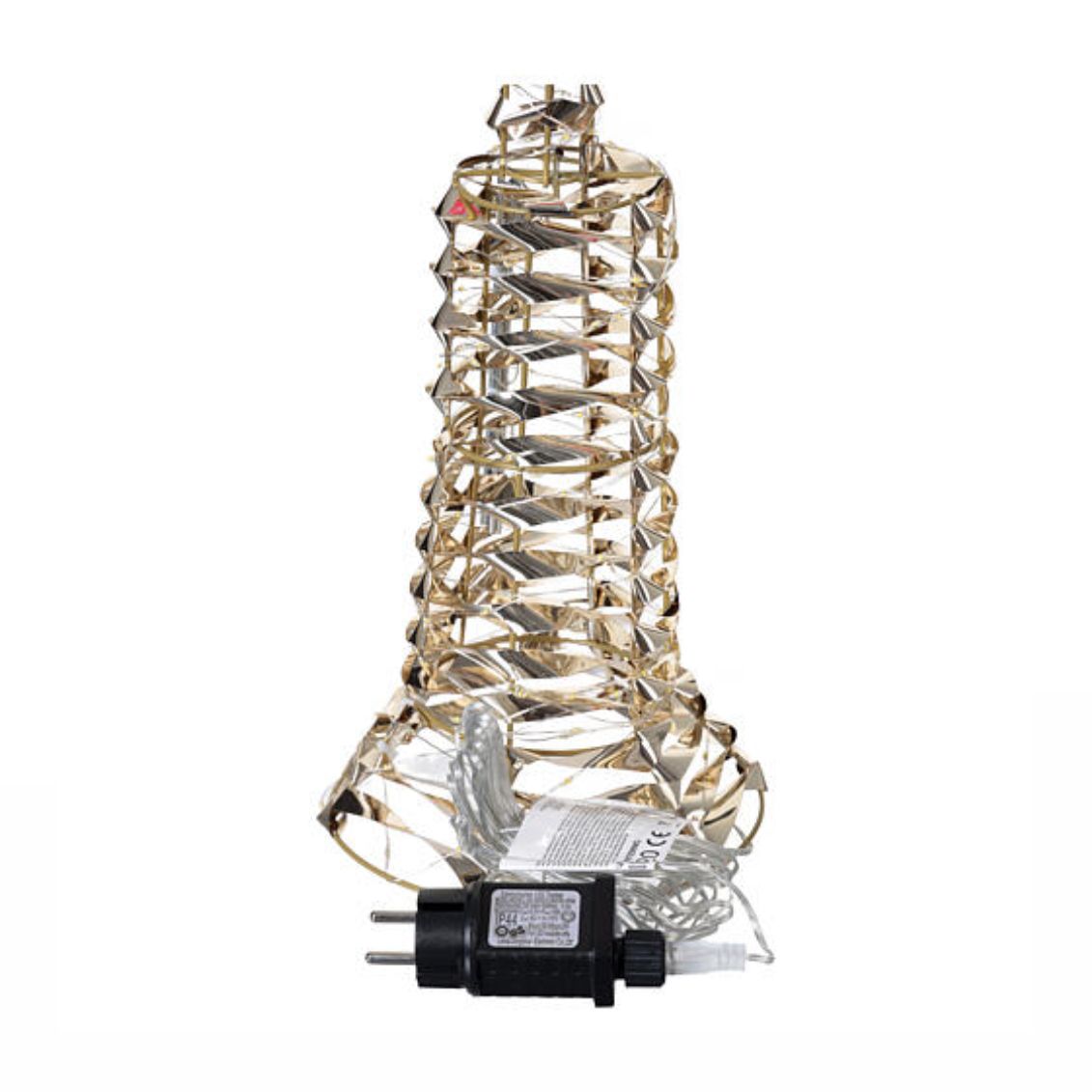 .L'eleganza verticale che illumina con stile! Questo maestoso faro decorativo di ben 120 cm di altezza in ferro e polietilene color oro è impreziosito da 400 LED bianchi a luce calda. La struttura verticale slanciata con fiocco rosso decorativo crea un punto focale scenografico. Perfetto sia per interno che esterno, ideale per ingressi, vialetti, terrazzi, salotti e vetrine. Il colore oro sofisticato dona eleganza e presenza a qualsiasi ambiente.