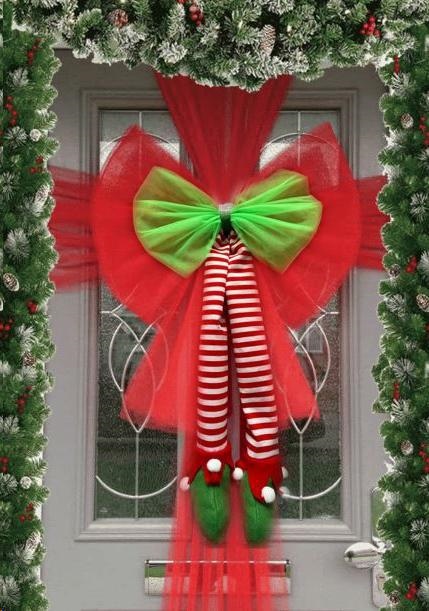 Fiocco Dietro Porta Tulle C/Nastro C/Gambe Elfo H.75X60Cm