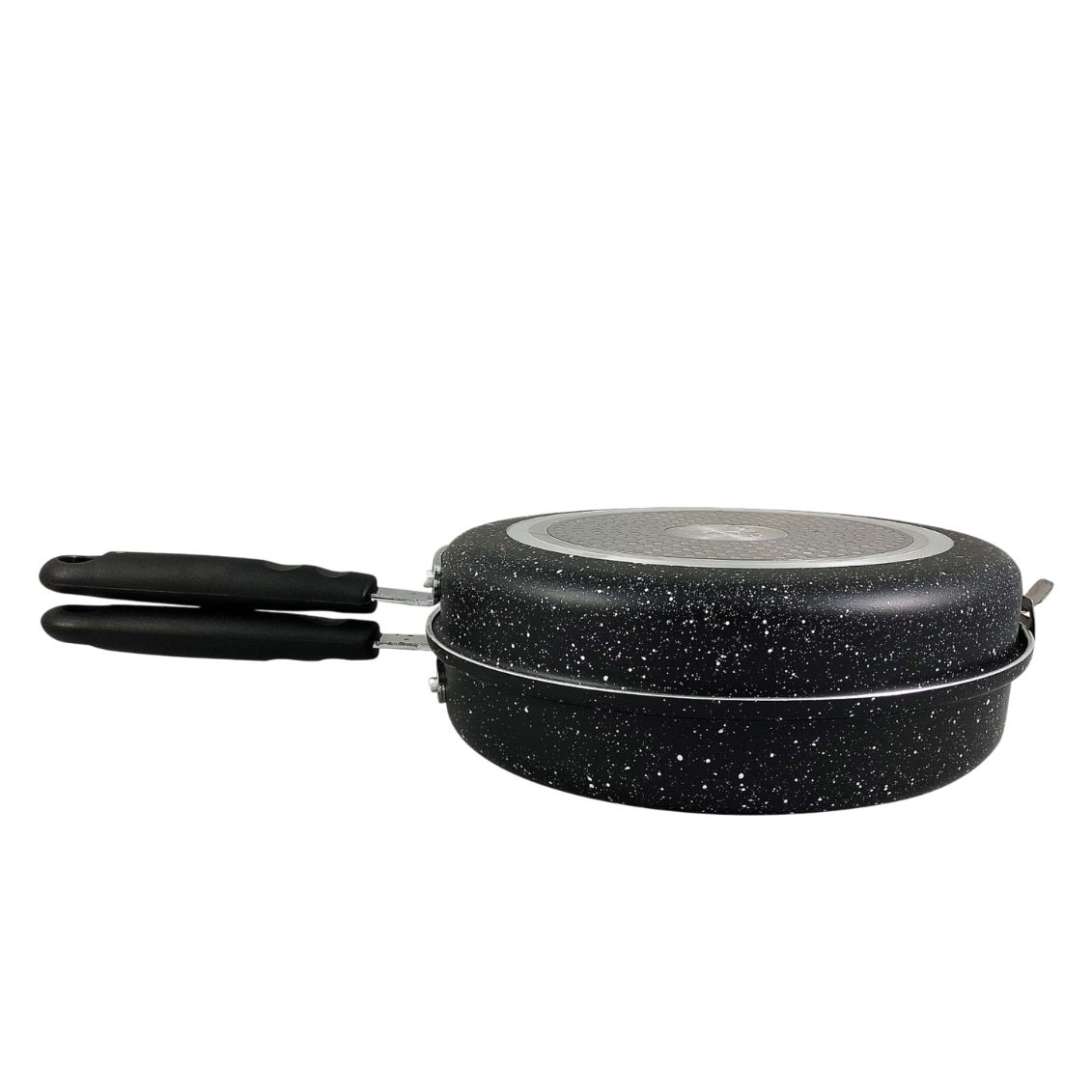La chiusura magnetica innovativa e il bordo anti-perdite permettono di cucinare qualsiasi pietanza senza fuoriuscite, mantenendo pulito il piano cottura. Privo di PFOA per una cottura sicura e salutare, questo fornetto doppio combina tecnologia avanzata e praticità d'uso. Ideale per cotture multiple simultanee o per preparazioni che richiedono due superfici di cottura diverse, ottimizza tempi e spazi in cucina.