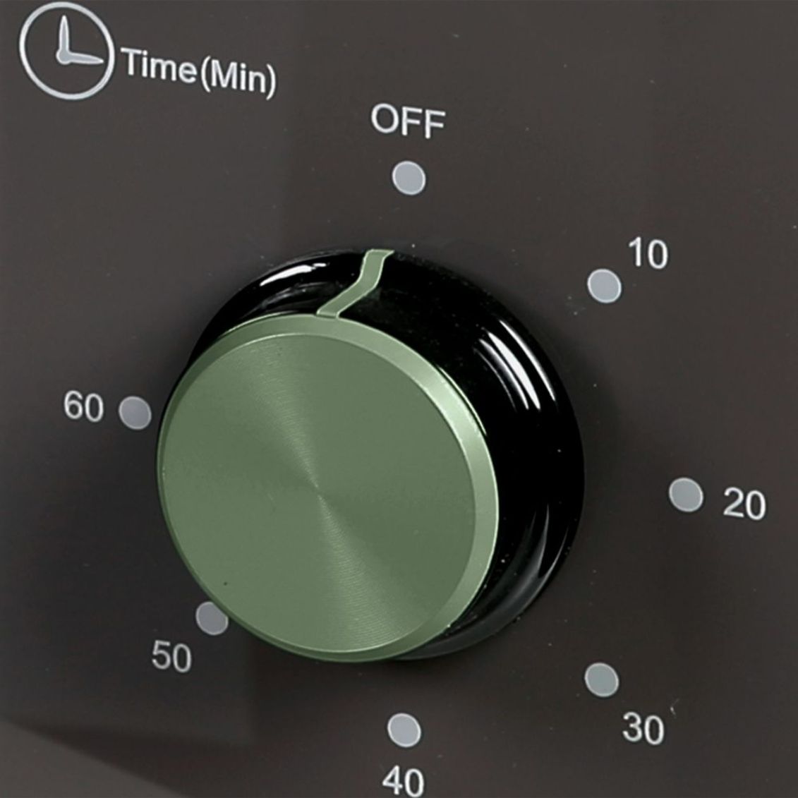 .Il forno elettrico da 60 L Iridea verde salvia è la scelta ideale per chi cerca capienza, potenza e stile in un unico elettrodomestico. La struttura in acciaio verniciato racchiude un ampio vano cottura rivestito internamente in materiale antiaderente per una pulizia facilitata anche dopo utilizzi intensi. Grazie alla ventilazione interna e alla potenza di 1900W, assicura una cottura uniforme e veloce, perfetta per pizza, dolci, arrosti e più portate contemporaneamente. Il termostato regolabile da 70°C a 230°C, il timer da 60 minuti con segnale acustico, le 6 funzioni di cottura e la luce interna lo rendono versatile e intuitivo da usare. Completo di griglia in acciaio inox, vassoio antiaderente, leccarda raccogli-briciole e girarrosto, è pronto all’uso fin dal primo giorno, valorizzando la cucina con il suo design distintivo.