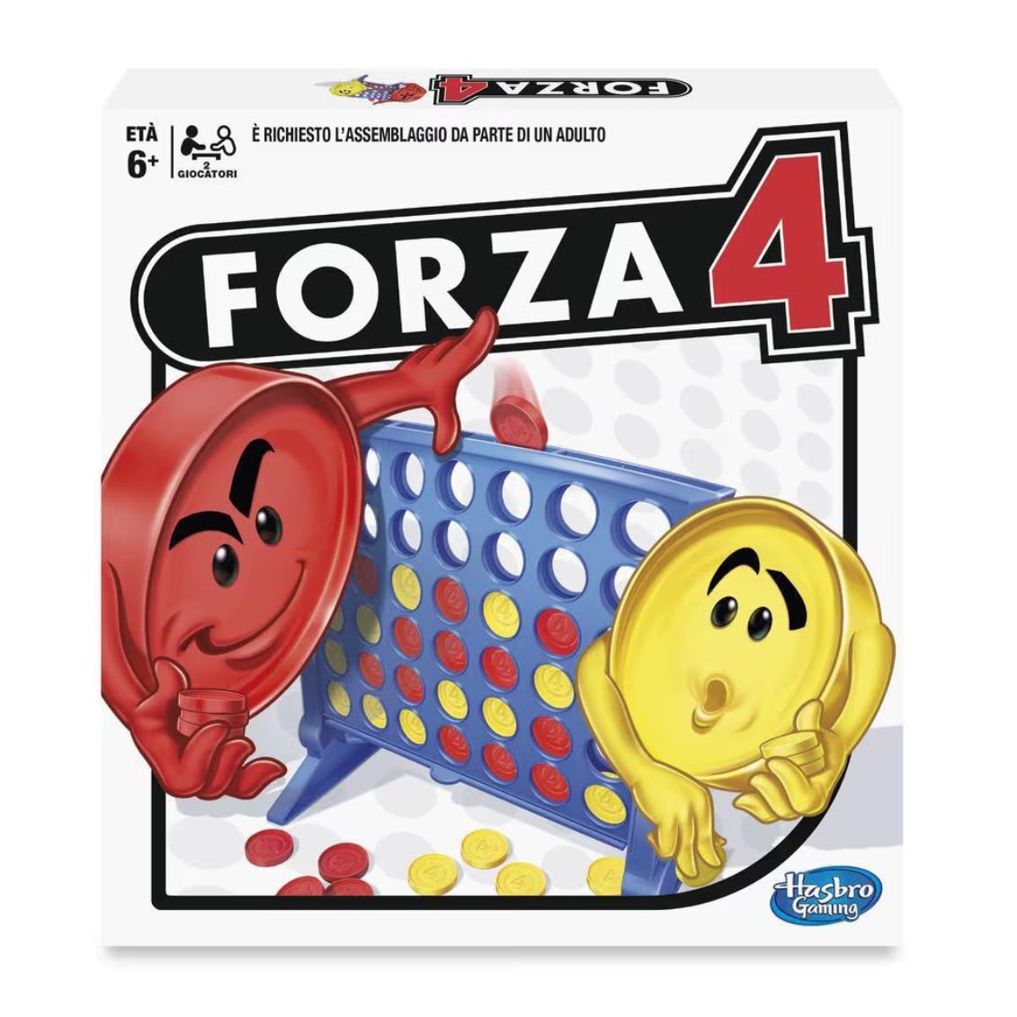 .Il gioco di strategia più famoso del mondo nella sua versione classica! Forza 4 di Hasbro sfida grandi e piccini a pensare velocemente e ad anticipare le mosse dell'avversario. Allinea 4 gettoni del tuo colore in orizzontale, verticale o diagonale prima che ci riesca il tuo sfidante. Un gioco senza tempo che unisce strategia, logica e divertimento per tutta la famiglia, adatto dai 6 anni in su.