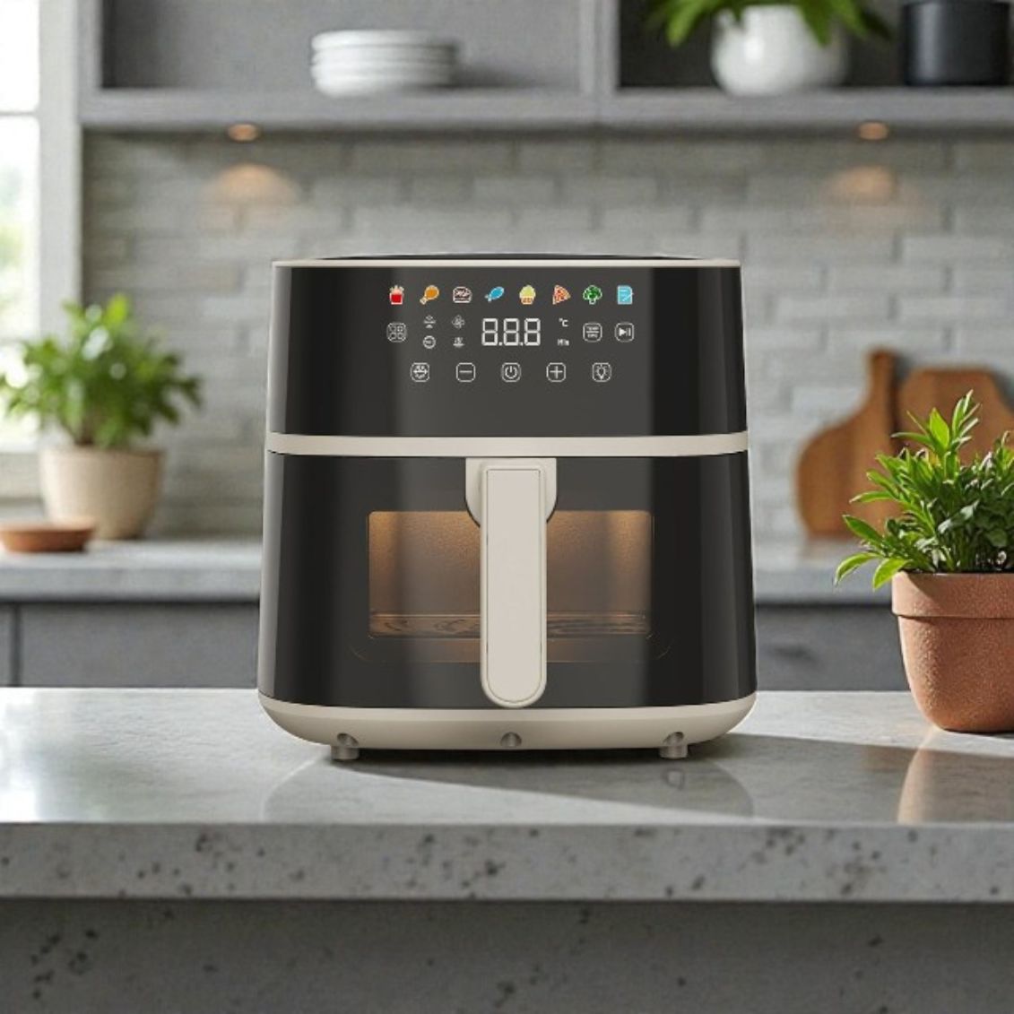 Inserire gli alimenti nel cestello antiaderente ampio con griglia estraibile, selezionare uno degli 8 programmi preimpostati tramite il pannello digitale intuitivo: patatine, pollo, verdure, pesce, carne, dolci, grigliatura o personalizzato. Impostare temperatura da 80° a 200°C e timer fino a 60 minuti per gestione precisa e automatizzata. La friggitrice Iridea da 6L cuoce con circolazione di aria calda tramite doppia resistenza superiore e inferiore, garantendo cottura uniforme e doratura perfetta su ogni lato, riducendo drasticamente l'uso di olio. La finestra trasparente con illuminazione interna permette di monitorare la cottura in ogni momento senza aprire il cassetto ed evitare dispersione di calore. Perfetta per friggere, grigliare, arrostire e cuocere al forno.