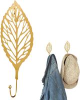 Descrizione: Gancio da parete a forma di foglia color oro, in metallo e porta utensili.