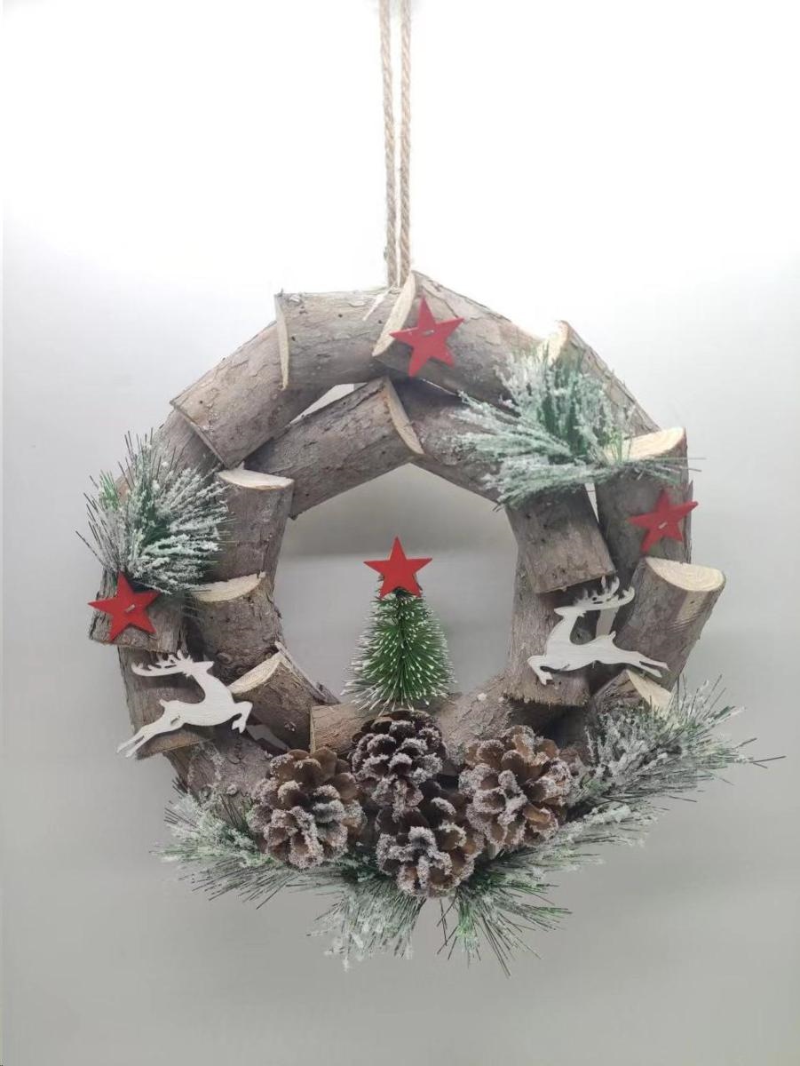 Ghirlanda Legno Da Appendere D.30Cm.C/Pigne/Aghi/Stelle