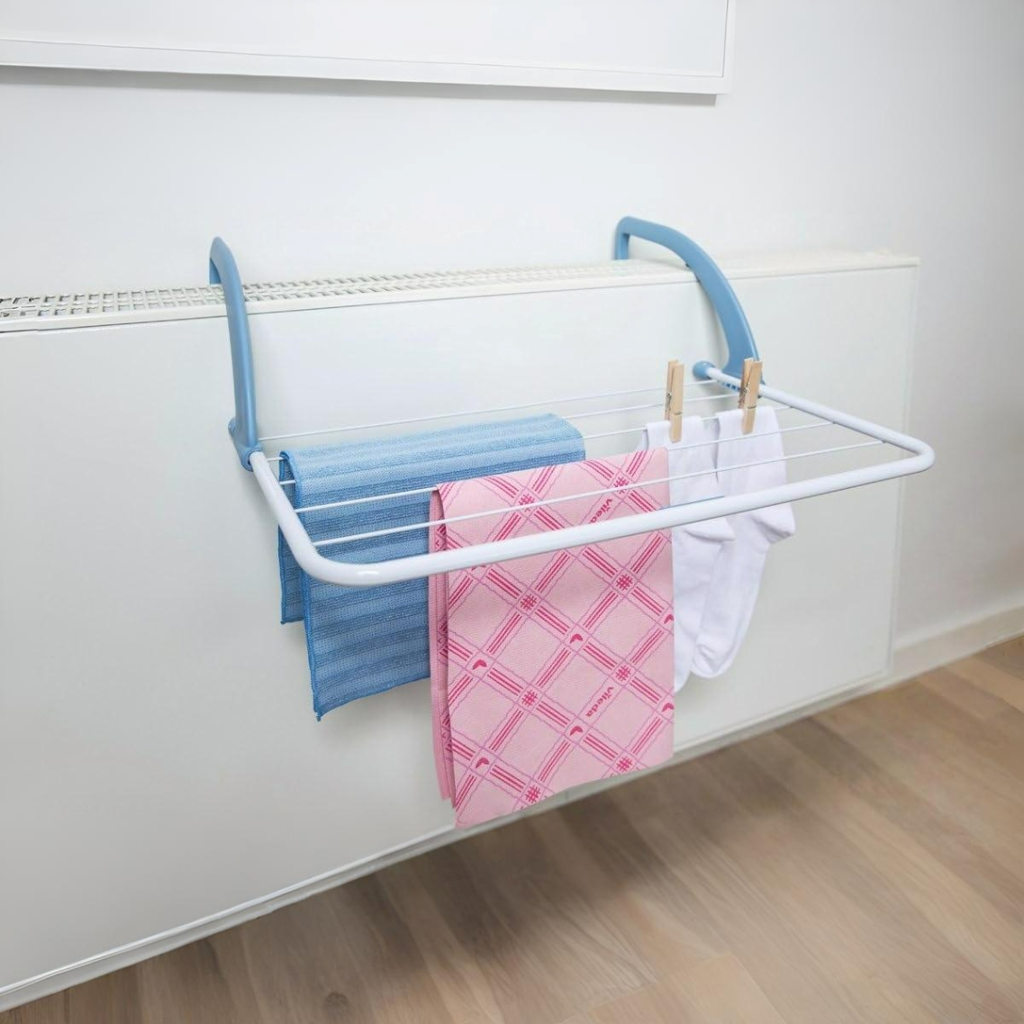 Aggancia lo stendibiancheria al termosifone (o al supporto compatibile) regolando i bracci per ottenere una presa stabile e sicura. Distribuisci i capi in modo uniforme sui fili e verifica che non ostacolino eventuali valvole o parti calde in modo anomalo. A fine utilizzo richiudi i bracci per ridurre l’ingombro e riponi lo stendino in un luogo asciutto.