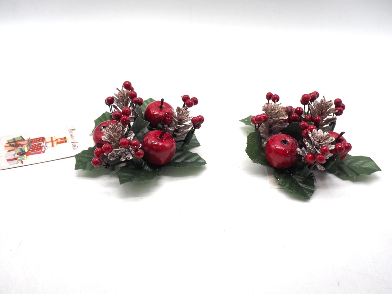 Girocandela Natalizio Diam.10Cm. Con 3Bacche E 3Pigne