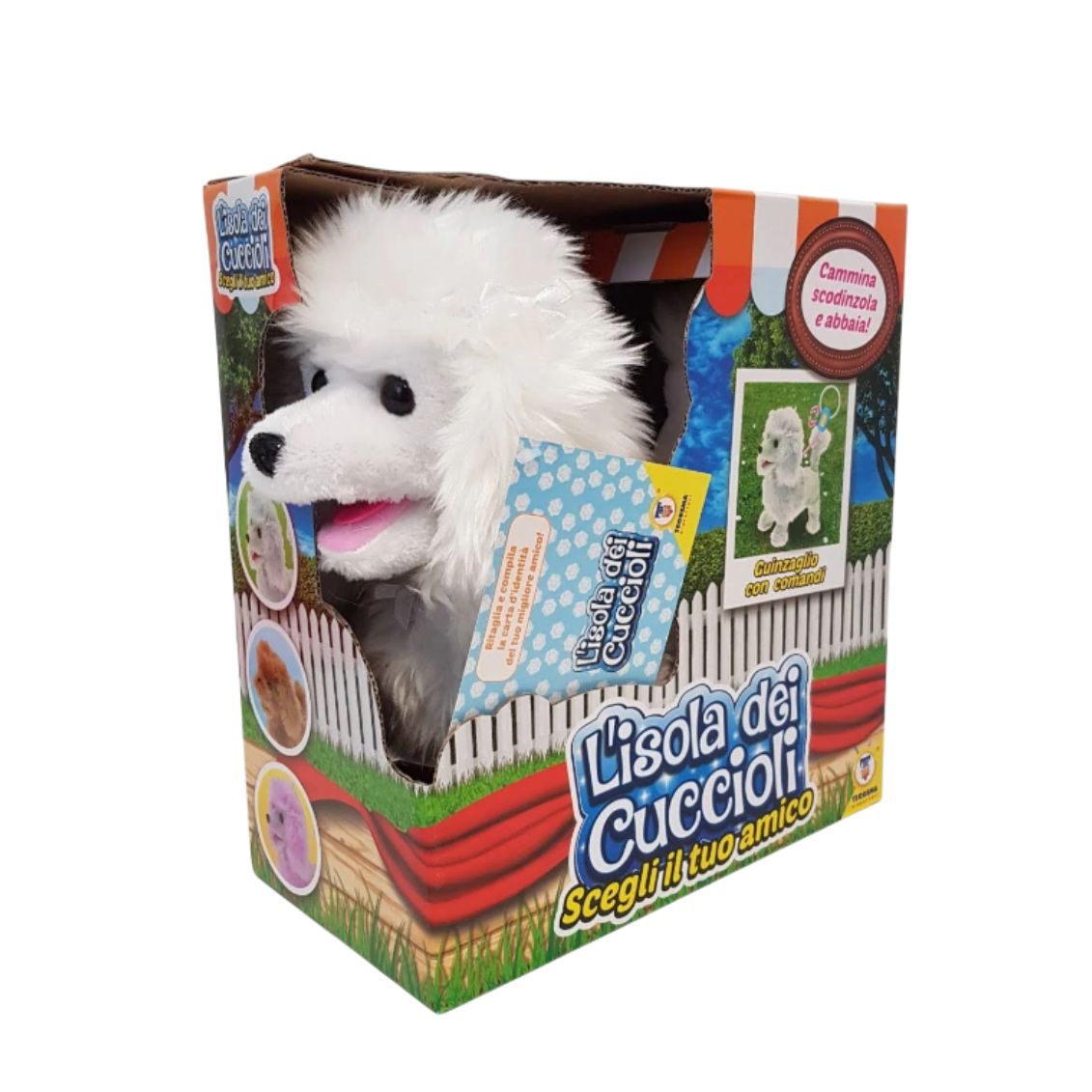 Il cagnolino di peluche che si muove come un cucciolo vero! Abbaia, scodinzola, cammina avanti e indietro grazie al guinzaglio con telecomando. Peluche morbidissimo che imita fedelmente i movimenti e i comportamenti di un vero barboncino. Dimensioni 25x23x12 cm. Per bambini 3+ anni.
