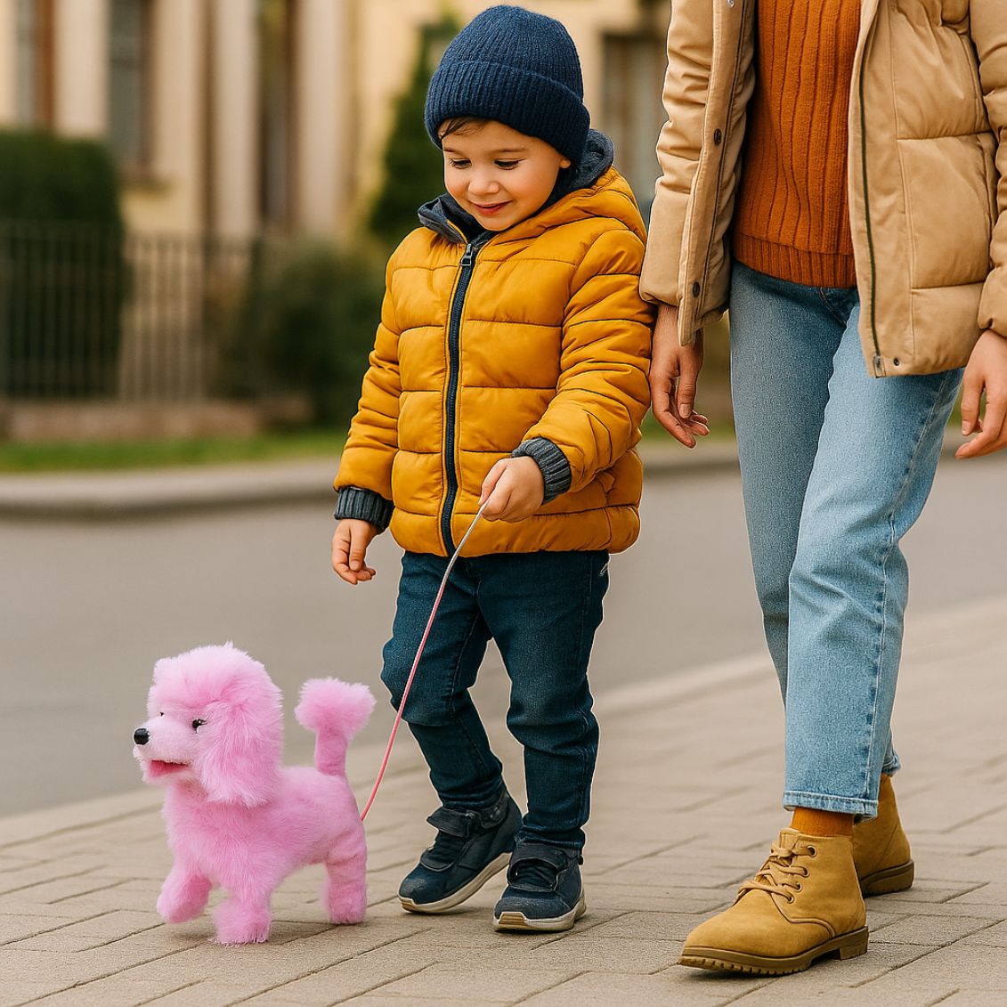 Il bambino tiene il guinzaglio con telecomando integrato e comanda il cucciolo premendo i pulsanti. Il cagnolino cammina avanti e indietro in modo realistico, scodinzola allegramente e abbaia proprio come un vero barboncino. Grazie al meccanismo motorizzato interno, il peluche si muove in modo fluido e naturale, offrendo un'esperienza di gioco immersiva. Il bambino può portare a spasso il suo cucciolo virtuale, prendersi cura di lui e giocare proprio come se avesse un animale domestico vero. Ideale per bambini dai 3 anni in su che desiderano l'esperienza di avere un cagnolino.