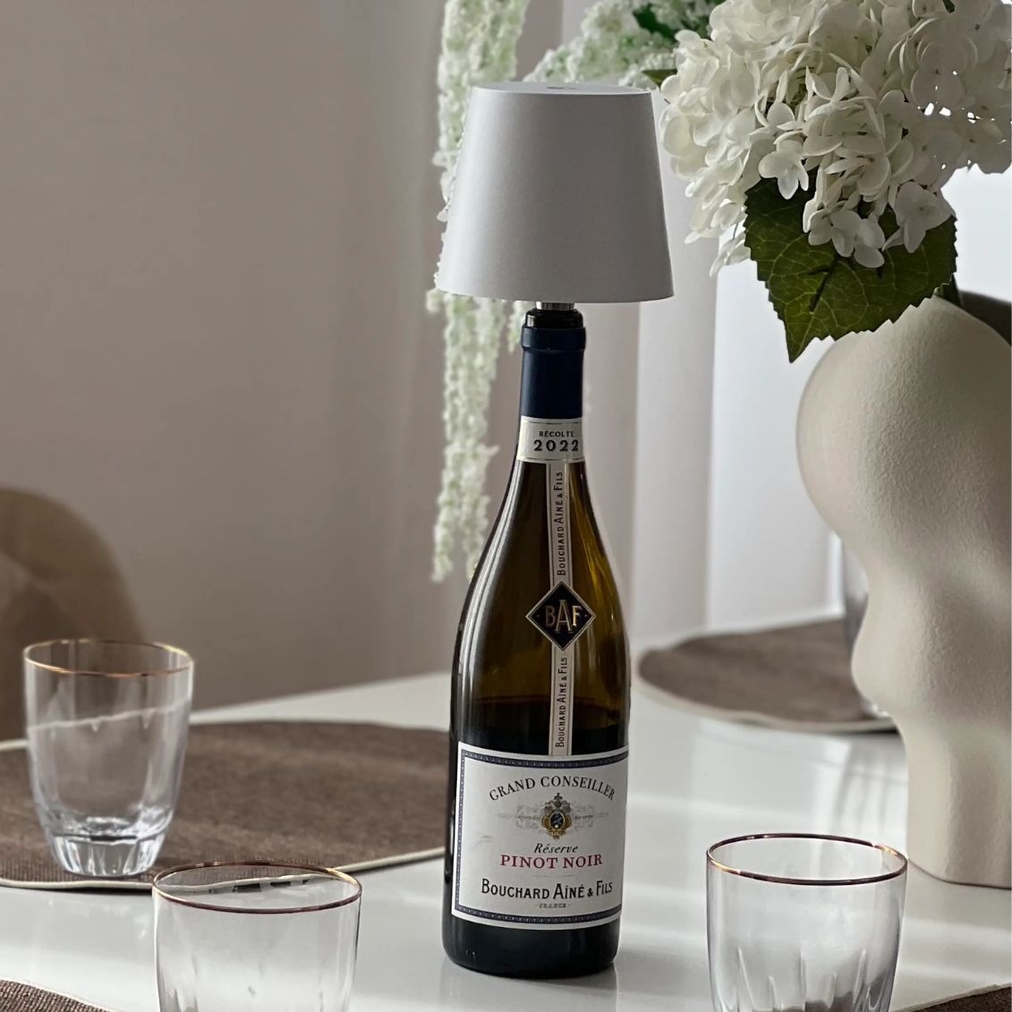 Un elemento di design unico: grazie al supporto incluso, può essere montata direttamente su una bottiglia di vino, trasformandola in un oggetto decorativo originale. Perfetta anche come regalo per gli amanti del design.